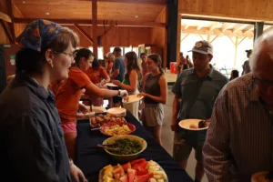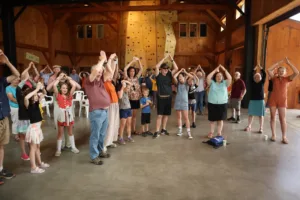 We start at 10am. Everyone is invited! You’ll hear from summer staff. We share about our experiences at camp, with God, and of course, there is singing! Lots of it, led by the BBC Band.